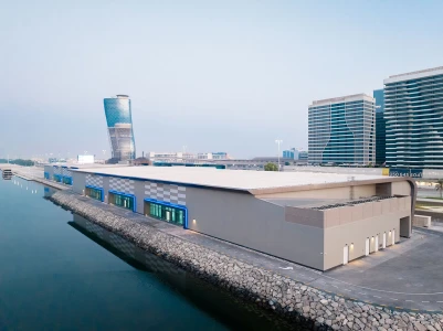تقع هذه القاعة الجديدة في منطقة المارينا المقابلة لمركز أدنيك أبوظبي، وتعتبر أكبر قاعة متخصصة للمعارض في منطقة الشرق الأوسط وشمال أفريقيا على الواجهات المائية.